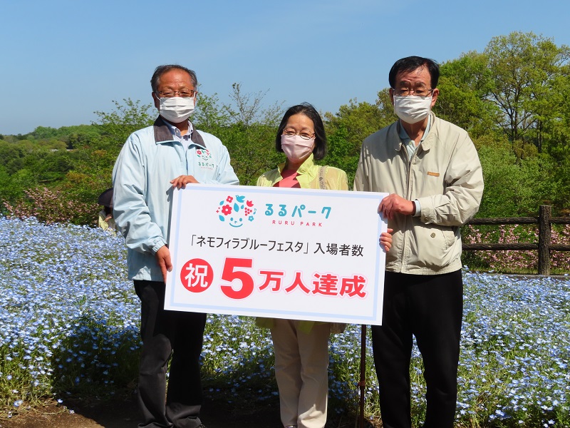 るるパークでは3月26日(土)から「ネモフィラブルーフェスタ」を開催中ですが、本日5万人を達成しました(^^)/
