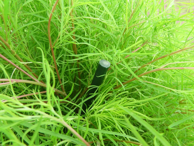 ▼画面手前のコキアは支柱を立てています