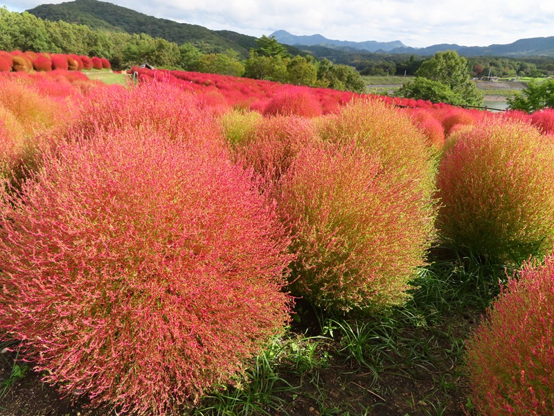 朝9:00すぎ、正面ゲートから左に徒歩3分・フラワーガーデンのコキアを撮影してきました。約4000本のコキアは見ごろを迎えています。