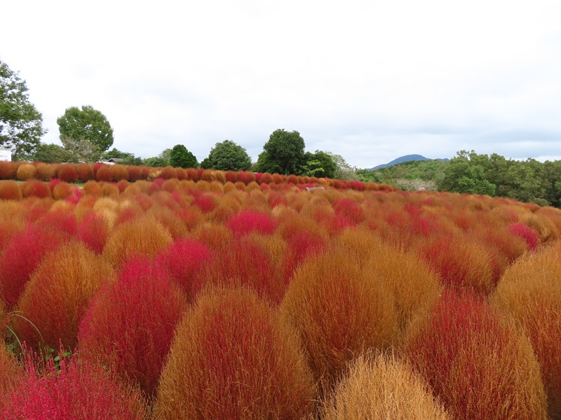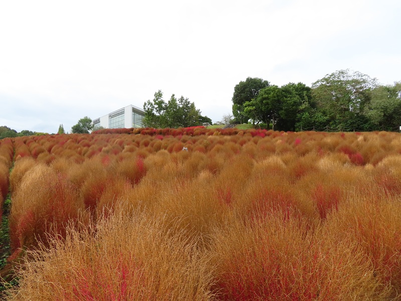 本日のコキアの様子も撮影しました。何度も申し上げますが今年は赤→黄金色への変化が早いです。あっという間です。昨日と今日で全然違っています。赤いコキアがご覧になりたい方は一日でも早い鑑賞をおすすめします。