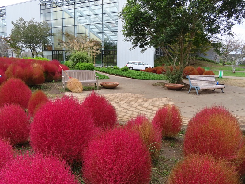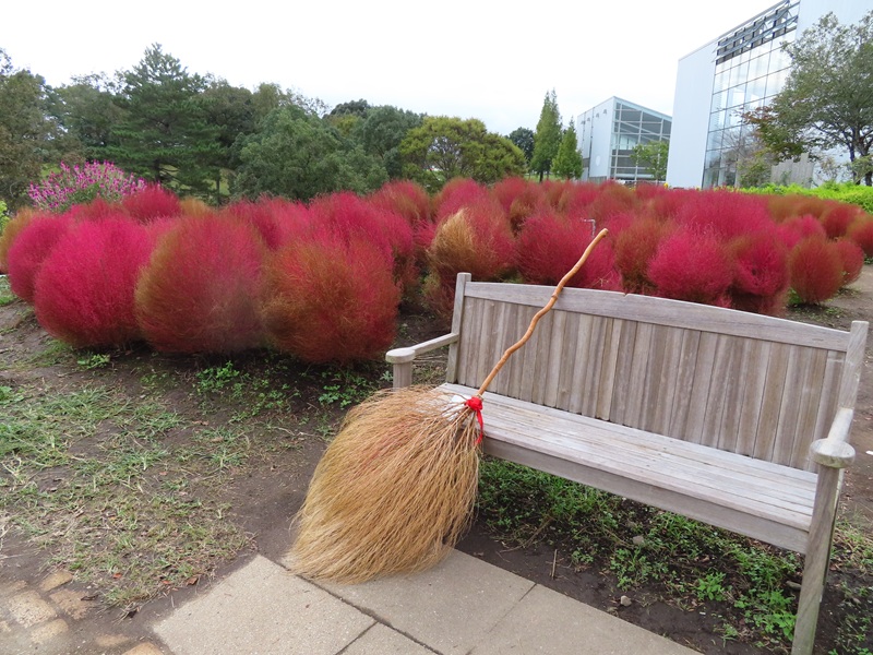 今年もコキアでホウキを作りました。コキアは和名を「ほうき草」と言い、その名前のとおりホウキになります。正面ゲートから徒歩3分・フラワーガーデンのベンチに立てかけていますので撮影でご利用ください。