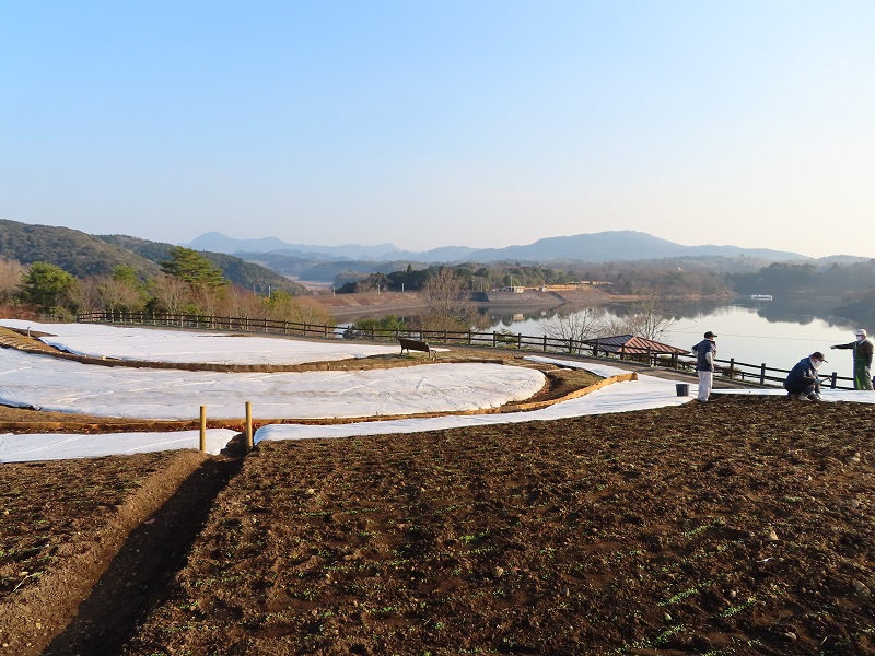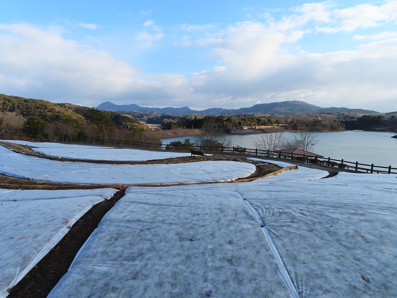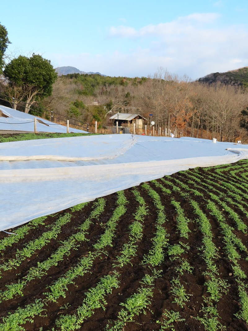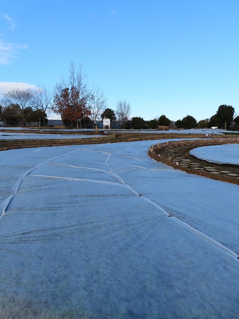 その不織布を少しはがして雑草を取り除く作業を引き続き行っています。指先がかじかみ、全身が冷たく凍るような厳しい作業です。