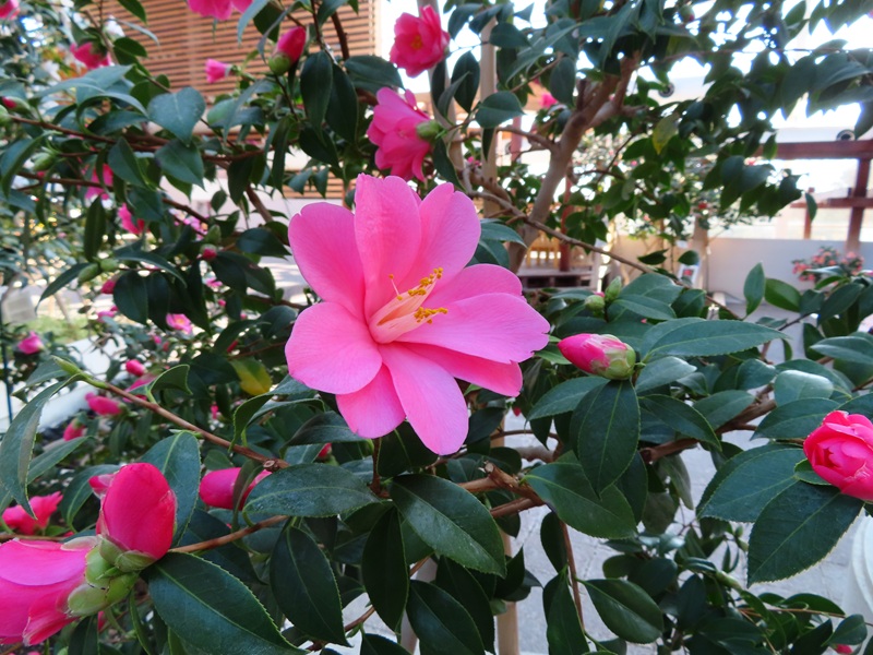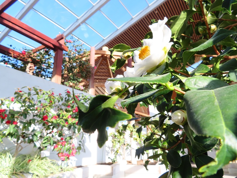 屋内つばき園が見ごろです(2月22日現在およそ50品種開花)