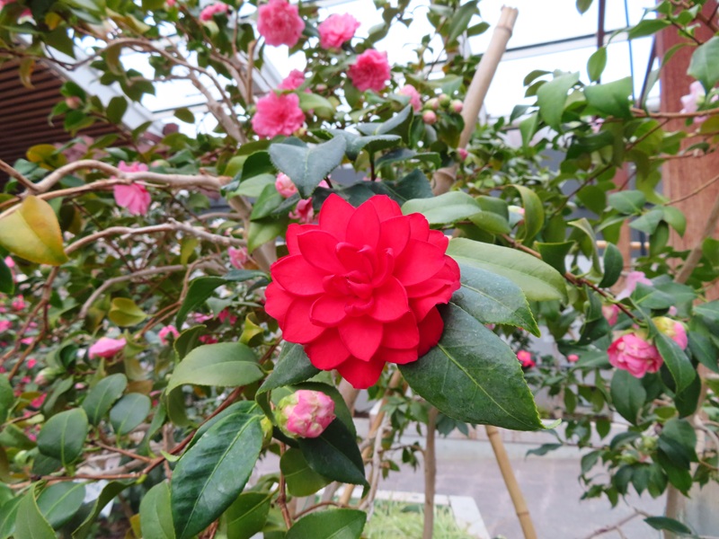 屋内つばき園は見ごろ/屋外つばき園の見ごろはもう少し先になりそうです