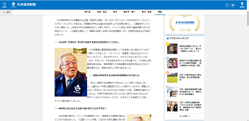 2020.03.18 矢野格園長のインタビュー記事が掲載されました 大分経済新聞に大分農業文化公園・矢野格園長のインタビュー記事が掲載されました。 大分農業文化公園で「ネモフィラブルーフェスタ」 「行動力の人」、矢野園長に聞く ぜひご一読ください。