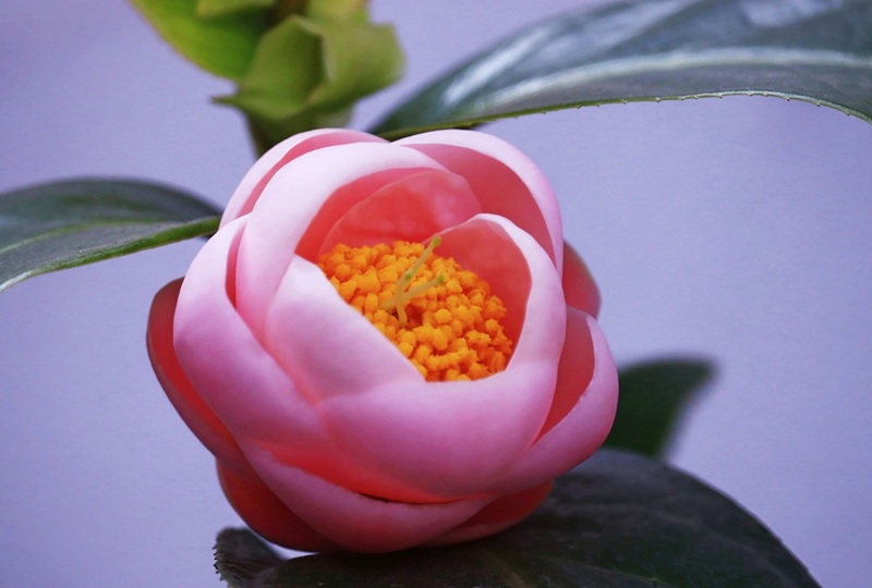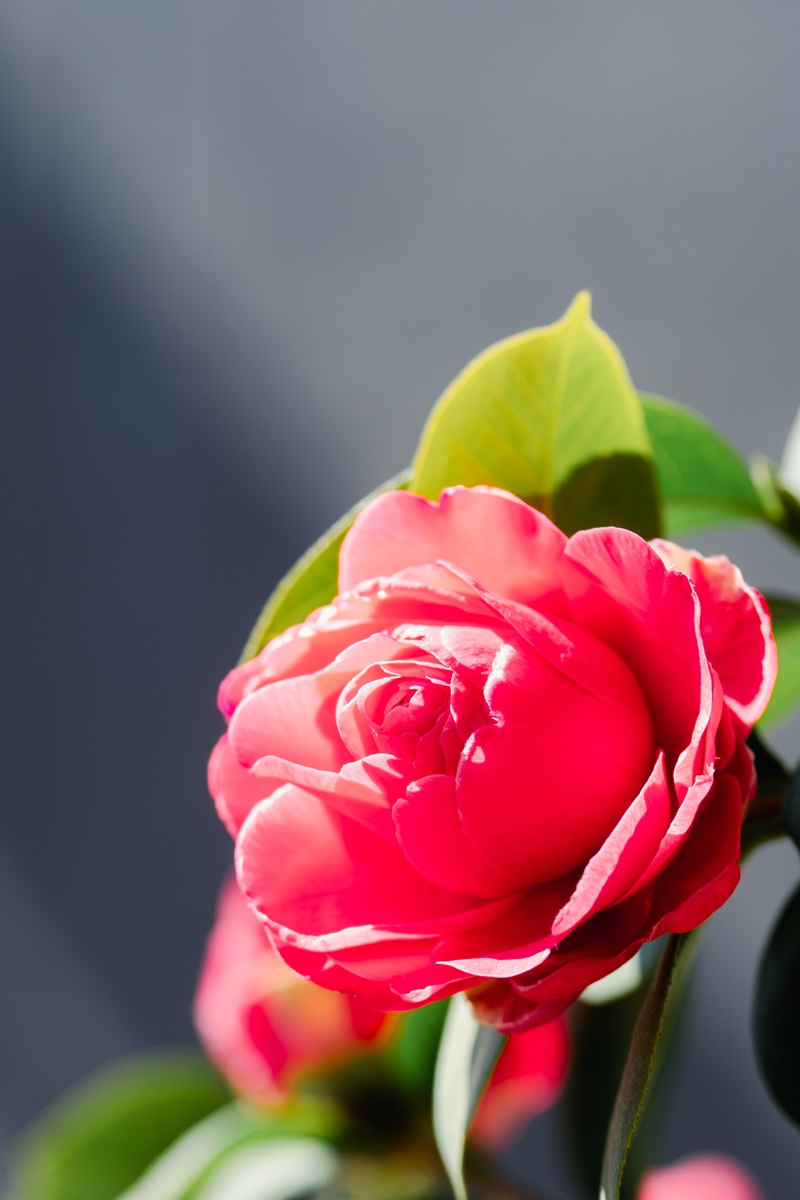 2026年の椿まつり初日は2月14日。意識したわけではありませんが、気がつけばこの「バレンタイン・デー」という、バラのような見た目の品種を取り上げた作品を複数選んでしまいました。教えてもらわないとツバキとは気づかない、真ん丸で鞠のような花(個体)です。右上と左下のふちに当たった光がアクセントになってより立体感を高めています。花弁一枚一枚の形がよくわかり、重なり方も美しい作品です。