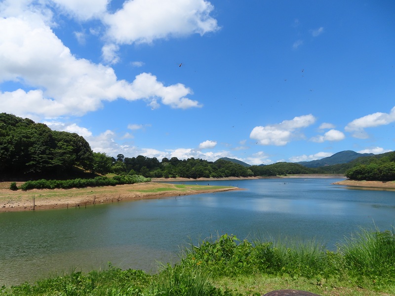 るるパークの真ん中には日指ダム湖(宇佐市の農業灌漑用水)がありますが、その水位が低下しています。