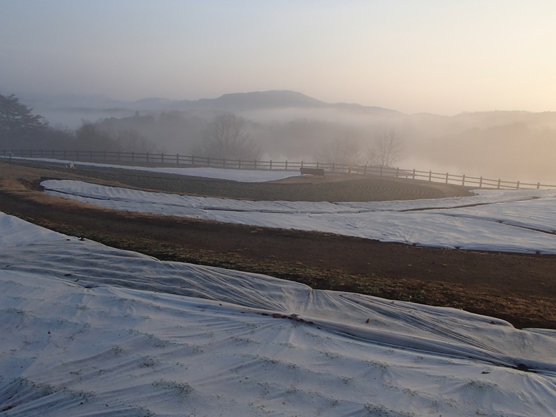 るるパークの朝霧(1月16日7:30頃撮影・園内でお泊まりした方だけがご覧いただける風景です)