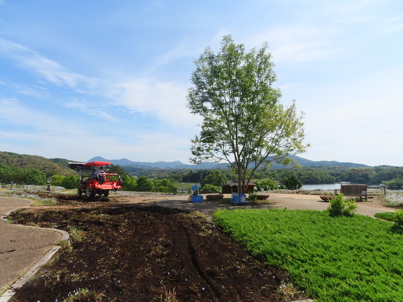 5月12日(日)までネモフィラを植えていたフラワーガーデンでは耕運作業が始まっています。何度かしっかり耕運して肥料を入れて6月中旬に小さな赤ちゃんコキアを植え付けます。どうぞお楽しみに!