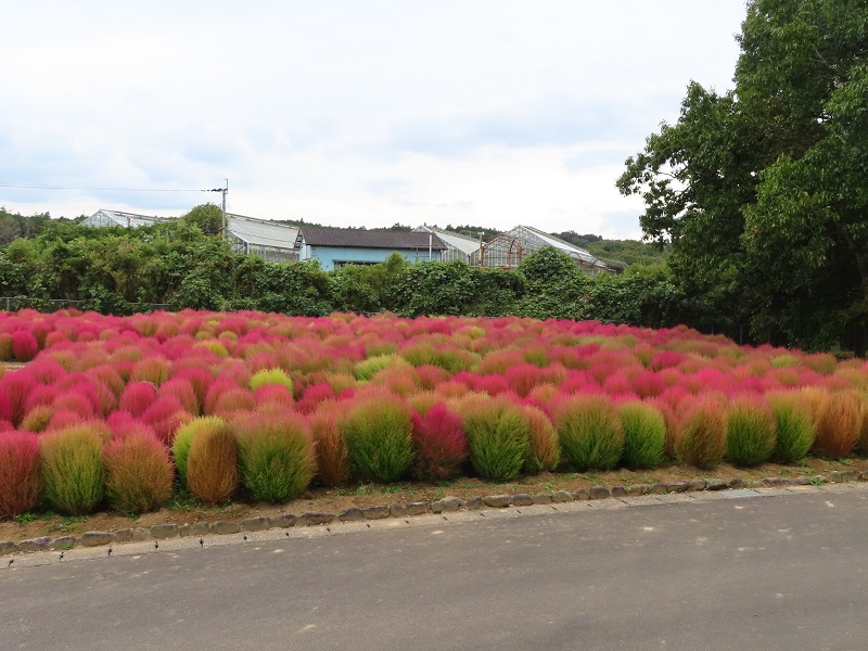 東ゲートから徒歩10分。私どもは「四季の花畑」に今年初めてコキアを植えました。(広さ1200㎡・本数1500本)