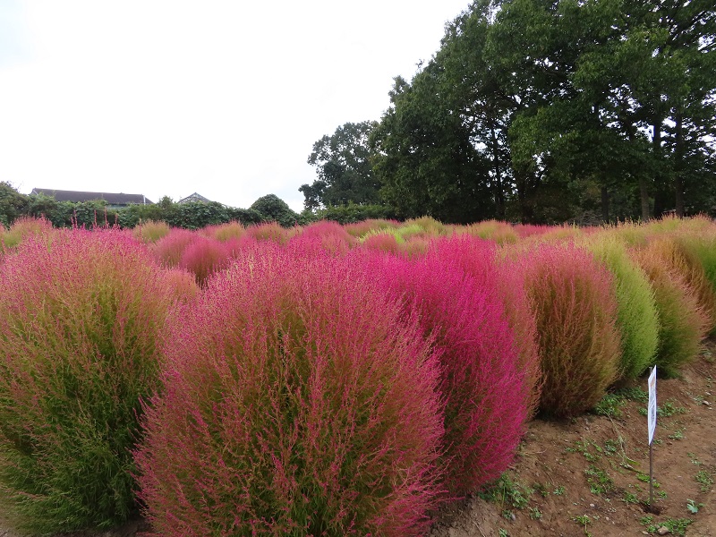 東ゲートから徒歩10分。私どもは「四季の花畑」に今年初めてコキアを植えました。(広さ1200㎡・本数1500本)