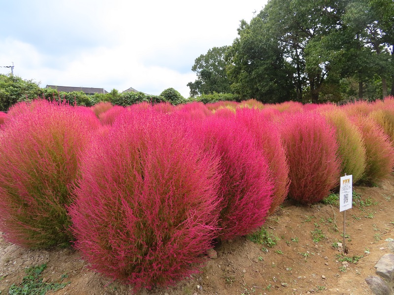 東ゲートから徒歩10分。私どもは「四季の花畑」に今年初めてコキアを植えました。(広さ1200㎡・本数1500本)