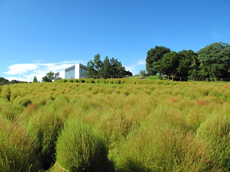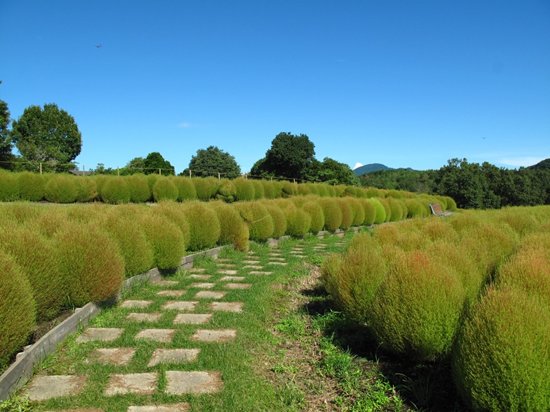 水曜日恒例、今日のコキアの様子をアップします。この調子でいけば来週から紅葉はじめ、10月上中旬には真っ赤なコキアがご覧いただけると予想しています。