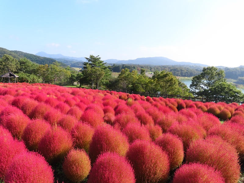 こんにちは。令和7年10月7日(火)、大分県杵築市・るるパーク(大分農業文化公園)は9:30から開園しています。10月は休園日なし、ということで本来休園日の火曜日の今日も9:30~17:00まで開園します。コキアが見ごろですから!