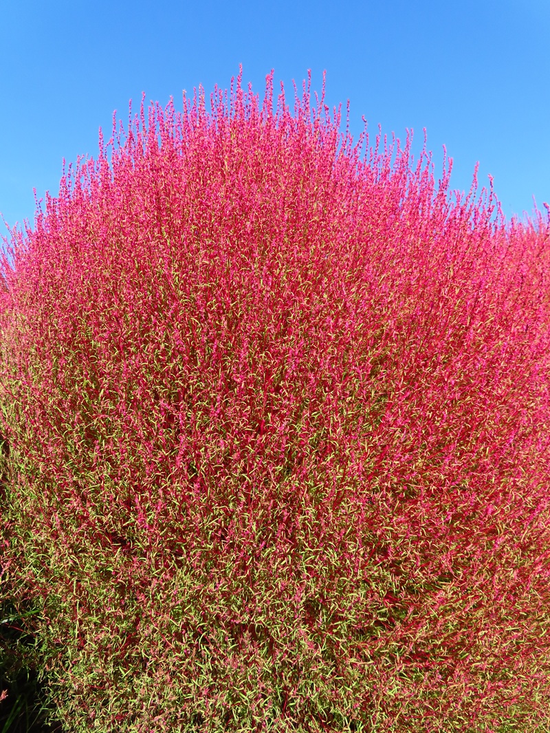 いつものように朝9:00すぎ、正面ゲートから左に徒歩3分・フラワーガーデンのコキアを撮影してきました。約4000本のコキアは日ごとに紅葉がすすんでいます。見ごろです!