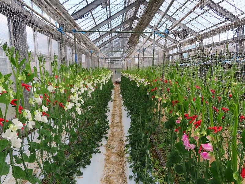 東ゲートから徒歩3分・ガラスハウスでは例年12月下旬から土日祝にスイートピーの切り花体験を開催していますが、こちらも開花が遅れています。