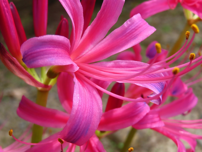 正面ゲートから徒歩1分、もみじ谷の端に4本だけですがネリネが開花していました。