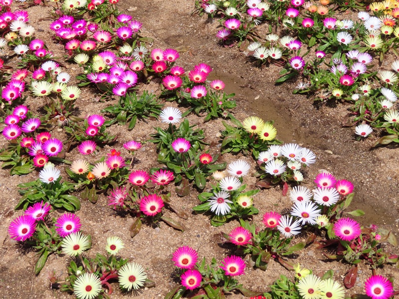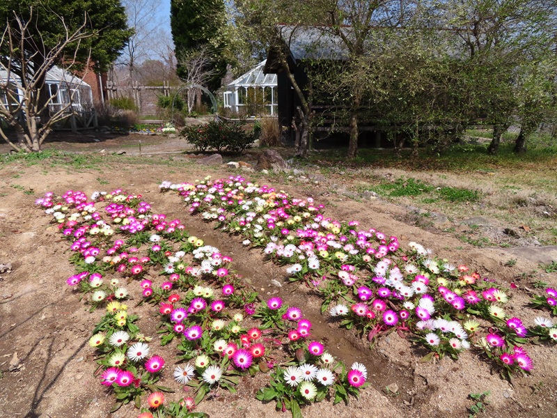 正面ゲートから右に徒歩3分・ハーブガーデンではリビングストンデージーが見ごろを迎えています。