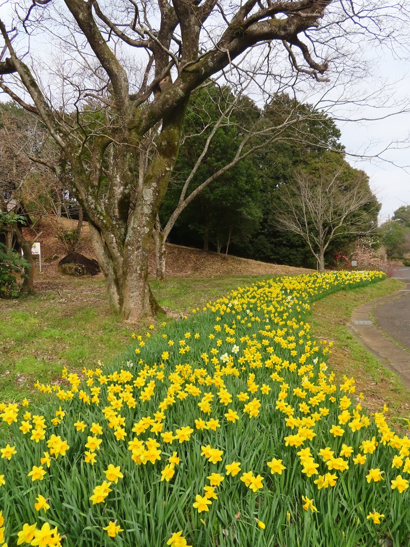 このスイセンは大分市で長年スイセンの栽培をしている萱野さんから令和3年(2021年)に球根をいただいて、その秋に植え付けをしたゾーンです。いただいた球根数はなんと3000球!!!萱野さん、改めてお礼を申し上げます。ありがとうございます!