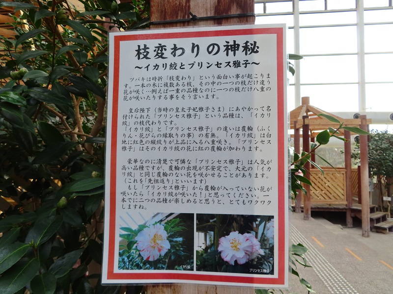 先ほど9時30分頃、約100品種100本のツバキを栽培している「屋内つばき園」に行ってきました(正面ゲートから徒歩3分)。現在20~30品種が咲き始めています。