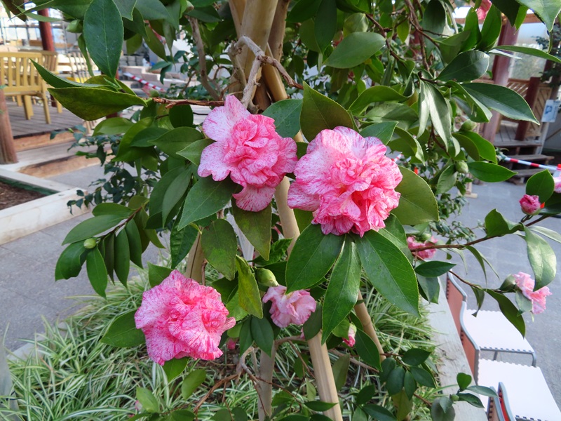 冬はお花の少ない季節ですが、るるパークの屋内つばき園(正面ゲートから左に徒歩3分)ではちらほらとツバキが咲き始めています。といっても100品種中の3~4種類なんですけどね。今日は2品種をご紹介します。