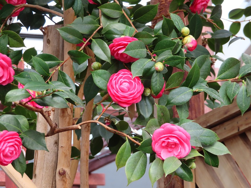 屋内つばき園約40品種開花中(全体としてはピークアウト中)/屋外つばき園の見ごろはもう少し先になりそうです