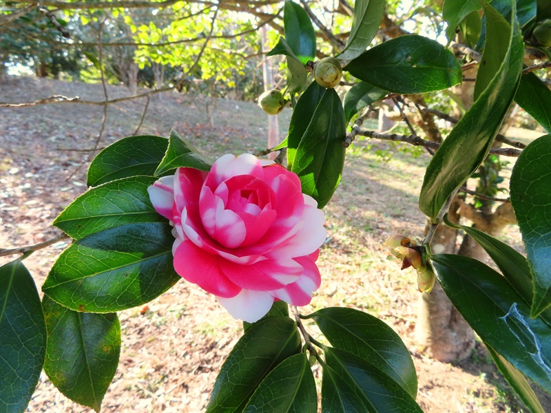 ですが東ゲート側にある屋外つばき園(国際優秀つばき園に認定されているのはこちら)はほとんどがつぼみ、咲いていません。早咲きのツバキもほとんど咲いていません。