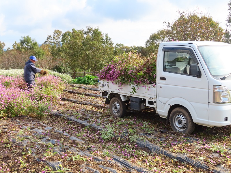 徐々に秋も深まってきて元気がなくなってきたのと次の植物を植える準備のため、現在撤去作業を行っています。作業用軽トラックが出入りしますが皆様のご理解とご協力をよろしくお願いいたします。