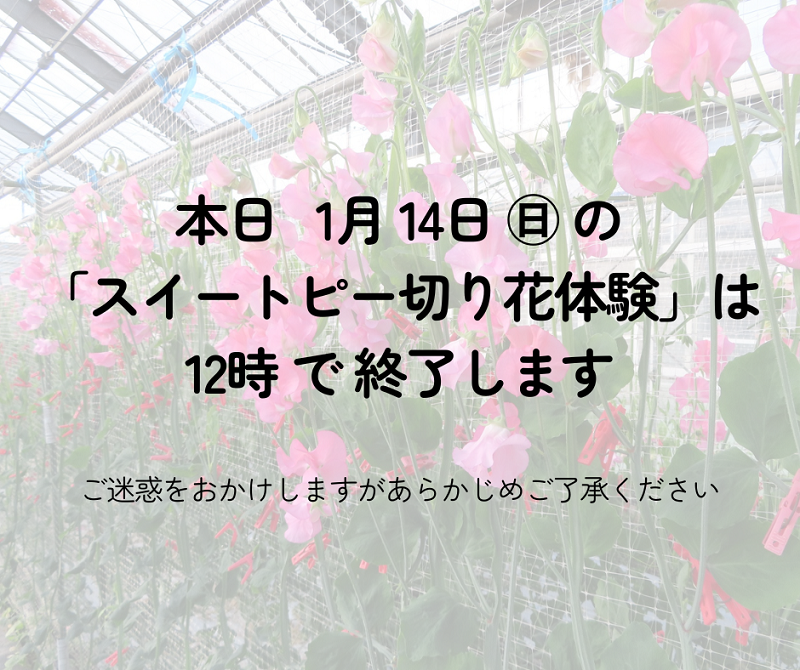 本日1月14日(日)「スイートピー切り花体験」は花の本数が少ないため、12時で終了します。