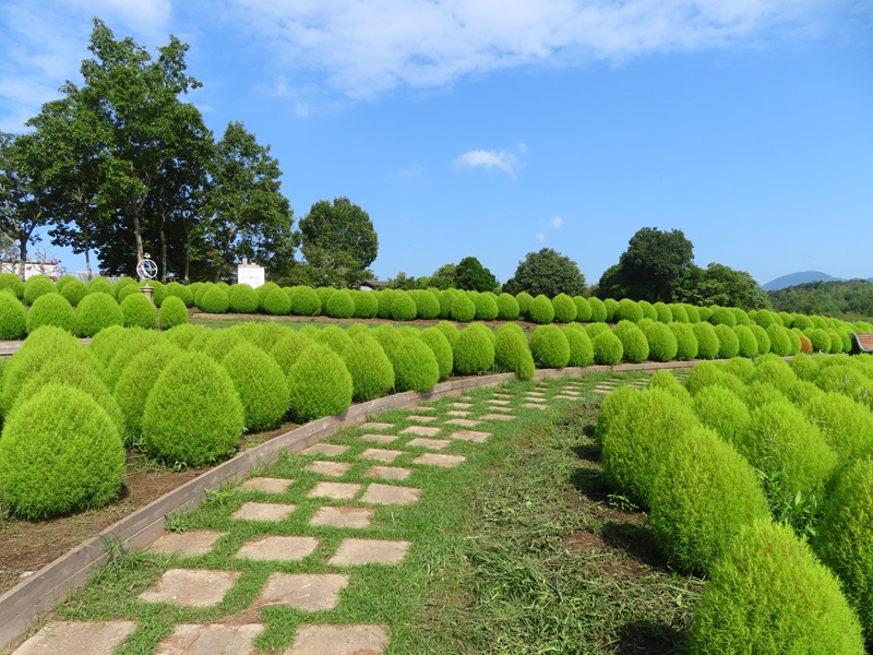 こんにちは。令和7年8月27日(水)大分県杵築市・るるパーク(大分農業文化公園)は今日も9:30に開園しました。薄曇りの朝です。 今日は水曜日、正面ゲートから徒歩3分・フラワーガーデンで撮影したコキア…