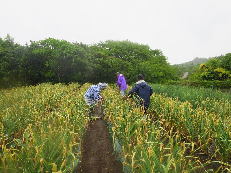 5月18日(土)嵐の中「ニンニクの収穫体験」を開催しました!