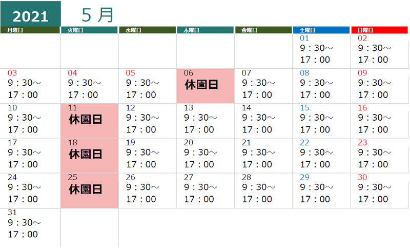 2・施設の営業について(3/27~5/5まで毎日開園)