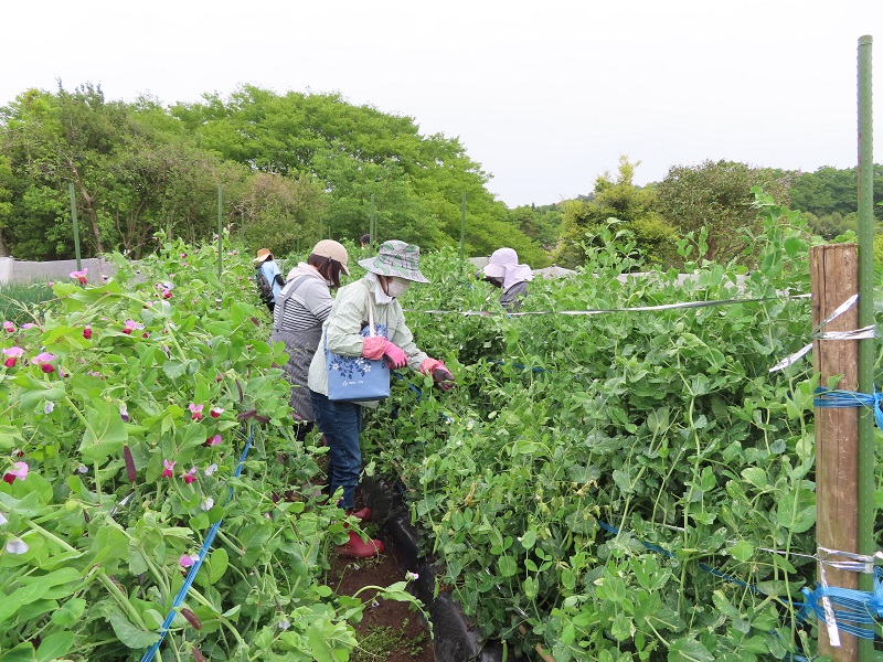 希望者にはスナップエンドウとニンニクも収穫していただきました。