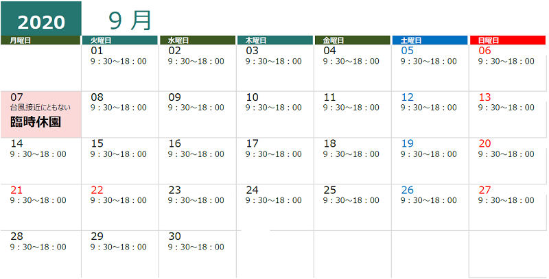 ※9月・10月の毎週月曜日と火曜日の受け入れはいたしません。