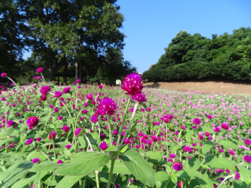 大分県杵築市「るるパーク(大分農業文化公園)」東ゲートすぐそばのクラインガルテンではセンニチコウ(千日紅)が見ごろを迎えています。今年は2,000平方メートルの畑に約10000株を植えています。 セン…