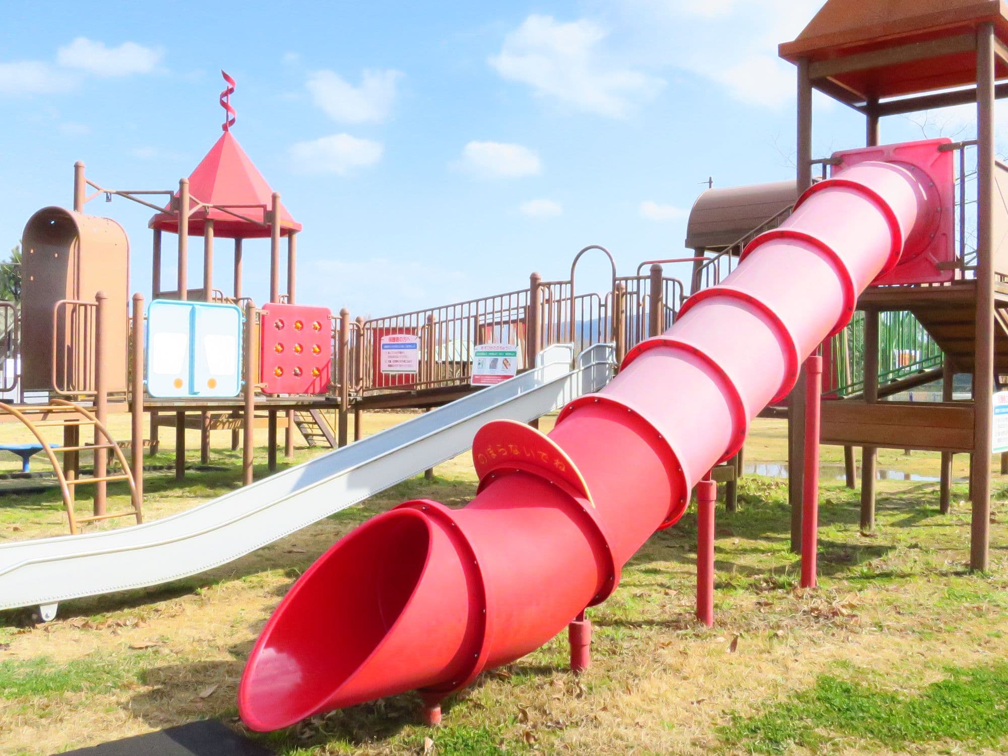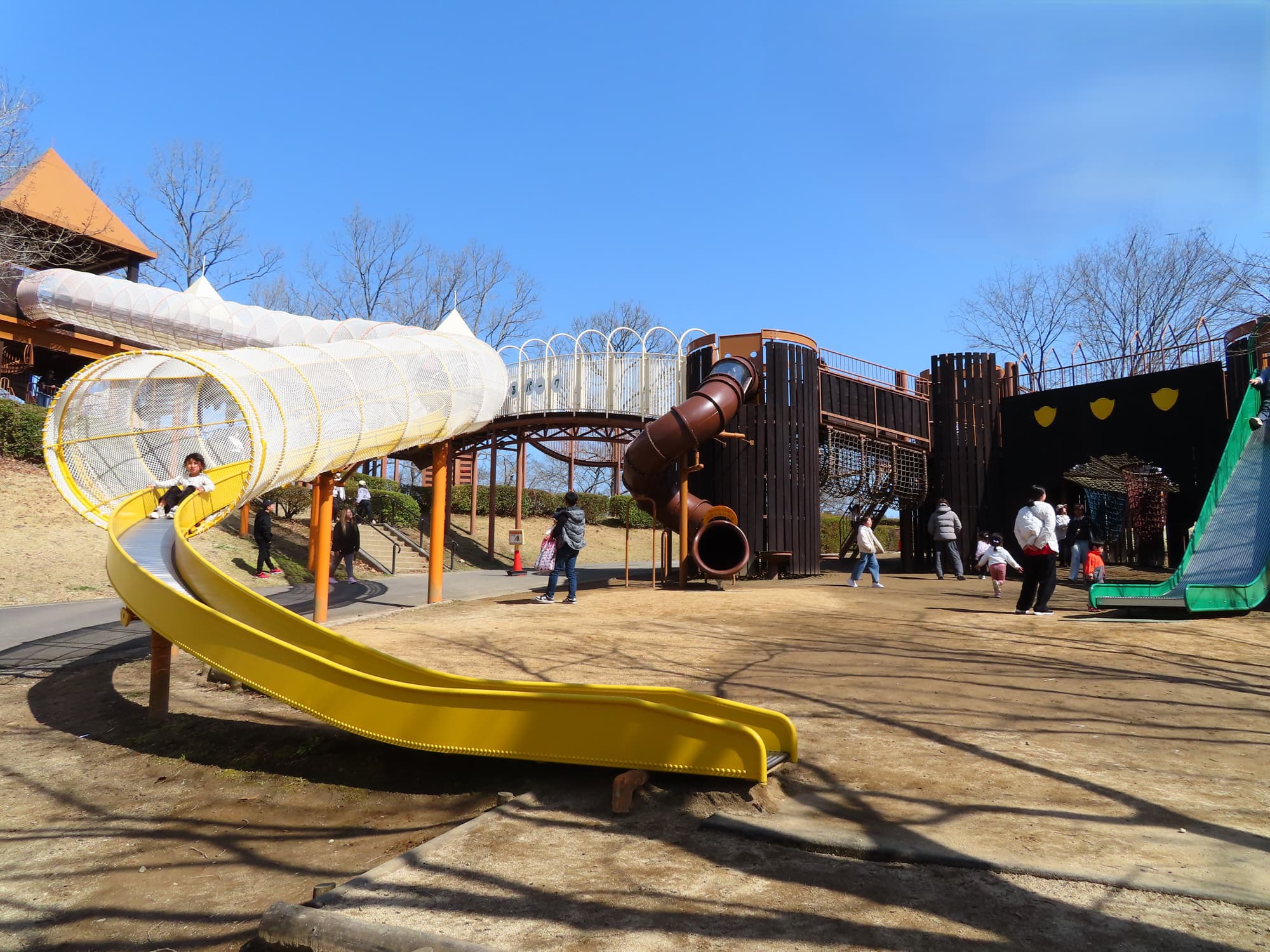 公園内3つの遊具の中で一番大きい「レイクサイドキャッスル」。すべり台、ロープのつり橋、展望デッキ、あみあみジャングル、あみあみトンネルなどがあり、絵本にでてくるようなお城をモチーフにしています。5つあるすべり台の中で最長は何と35m。ちょっとお尻が痛くなります。