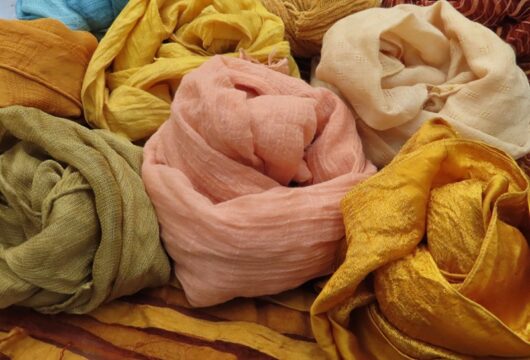 5月31日(日)「草木染め講座」を開催いたします。講師は染織かっこの工房・木村加代子先生です。今回は玉ねぎを使って金茶色に染め上げます。生地によって金色になったり、茶色が強く出たり。草木染めの奥深さをお楽しみください。